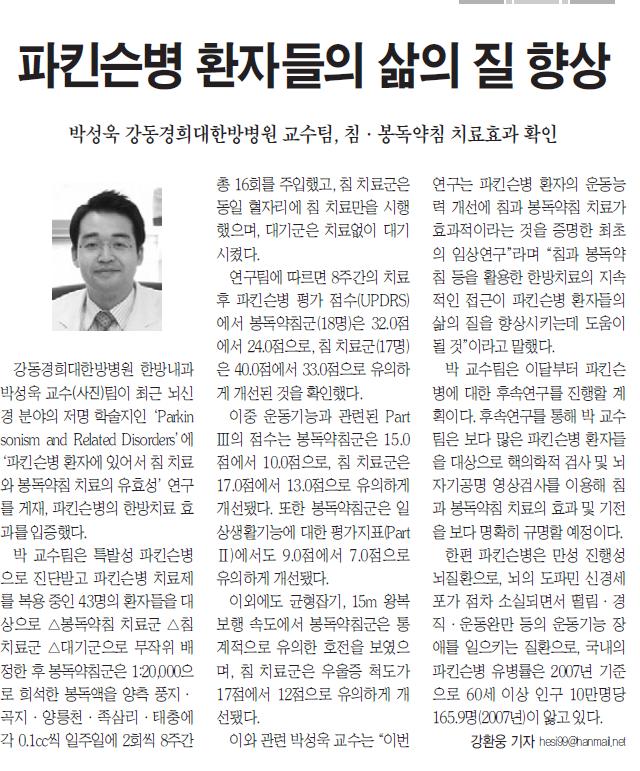 °µ¿°æÈñ´ë Çѹ溴¿ø ¹Ú¼º¿í±³¼ö- ÆÄŲ½¼º´ ȯÀÚµéÀÇ »îÀÇ Áú Çâ»ó